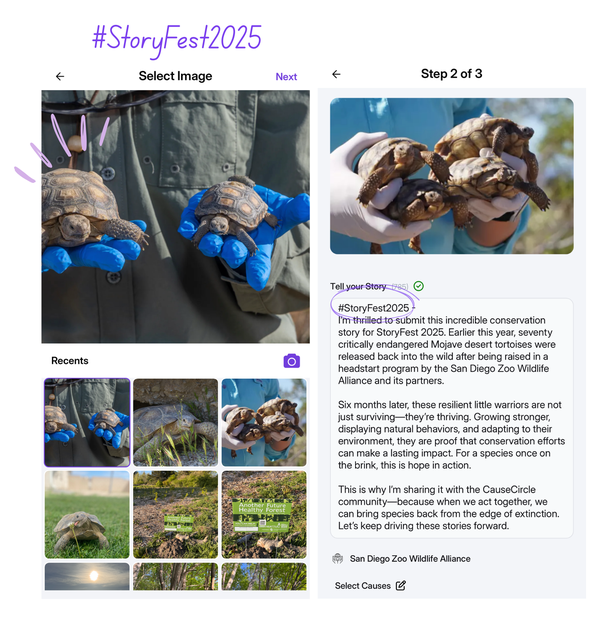 You can submit blog articles, Instagram Stories, or create a new impact story directly on CauseCircle. Stories should highlight real community impact and mission-driven efforts. It could be an impactful nonprofit project, campaign, event or any effort that demonstrates your nonprofit’s mission.